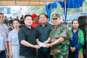 និងបងប្អូនប្រជាពលរដ្ឋ ព្រមទាំងបងប្អូនក្រុមគ្រួសារជនភៀសសឹក ចំនួន៦១៩គ្រួសារទៀត ដោយក្នុង១គ្រួសារទទួលបាននូវ៖អង្ករ ១បាវ,ទឹកបរិសុទ្ធ ៦ដប,មីខ្លាឃ្មុំ ២០កញ្ចប់,ទឹកផ្លែឈើ Era gold 5 កំប៉ុង,នំប្រៃ ១កញ្ចប់,ទឹកស៊ីអ៊ីវ ១យូរ,អំបិលម្រិច ១ខ្សែរ,ទឹកដោះគោ ២កញ្ចប់,បាយប្រអប់ ៤ប្រអប់,ស្ករ ១កញ្ចប់,ទឹកត្រី ១យូរ,ត្រី ខ ១យូរ,អំបិល ១កញ្ចប់,មុង ១,ភួយ ១,ថ្នាំពេទ្យមួយចំនួន,អាវរងារ ១,នំសូកូឡា សាំងវិច ១កេស,នឹងថវិកា ក្នុងម្នាក់ ២ម៉ឺនរៀលថែមទៀត។