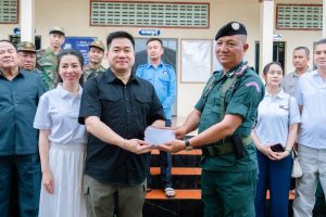នៅក្នុងស្មារតីខ្មែរស្រលាញ់ខ្មែរ! ខ្មែរជួយខ្មែរ! ខ្មែរដើម្បីខ្មែរ! លោកឧត្តមសេនីយ៍ត្រី ម៉េង ស្រ៊ុន បានបន្តដឹកនាំក្រុមការងារកងរាជអាវុធហត្ថខេត្តកំពង់ស្ពឺ និងក្រុមការងារ ស.ស.យ.ក.កំពង់ស្ពឺ ព្រមទាំងបងប្អូនសប្បុរសជន ដែលមានចិត្តសប្បុរសធម៏ចំពោះជាតិមាតុភូមិ វីរៈកងទ័ពជួរមុខនិងប្រជាជន បានអញ្ជើញ ចុះសួរសុខទុក្ខ នាំយកនូវសំភារៈប្រើប្រាស់ និងគ្រឿងឧបភោគបរិភោគ ព្រមទាំងថវិការ ដើម្បីយកទៅចែកជួនដល់កងកម្លាំងដែលកំពុងឈរជើងនៅខ្សែត្រៀមជួរមុខដើម្បីការពារបូរណភាពទឹកដីនៅតាមបណ្តោយព្រំដែនកម្ពុជា-ថៃ យោធភូមិភាគទី៣ ក្នុងខេត្តកោះកុង និងបងប្អូនក្រុមគ្រួសារជនភៀសសឹក និងប្រជាពលរដ្ឋសរុបចំនួន៦១៩គ្រួសារ…